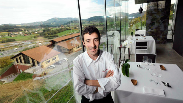 La cocina vasca sigue brillando en el Olimpo de los dioses de los fogones y deslumbra. El restaurante Azurmendi (km.0 Slow Food Bilbao-Bizkaia), del chef Eneko Atxa, situado en Larrabetzu, entró ayer por primera vez en la lista de los cincuenta mejores del mundo -que publica la revista británica Restaurant- en el puesto número 26. La designación se hizo oficial en la gala anual de la publicación celebrada en la sala Guildhall de Londres, donde también obtuvo el premio a la sostenibilidad. El establecimiento de Atxa corona así la lista de los Oscar de la gastronomía ya que en noviembre de 2012 se consagró con tres estrellas Michelin. El triestrellado Eneko Atxa (Zornotza, 1977) aseguró sentir satisfacción, al tiempo que «mucha tranquilidad», por el reconocimiento: «Estoy feliz porque estoy disfrutando más del camino que de las metas».