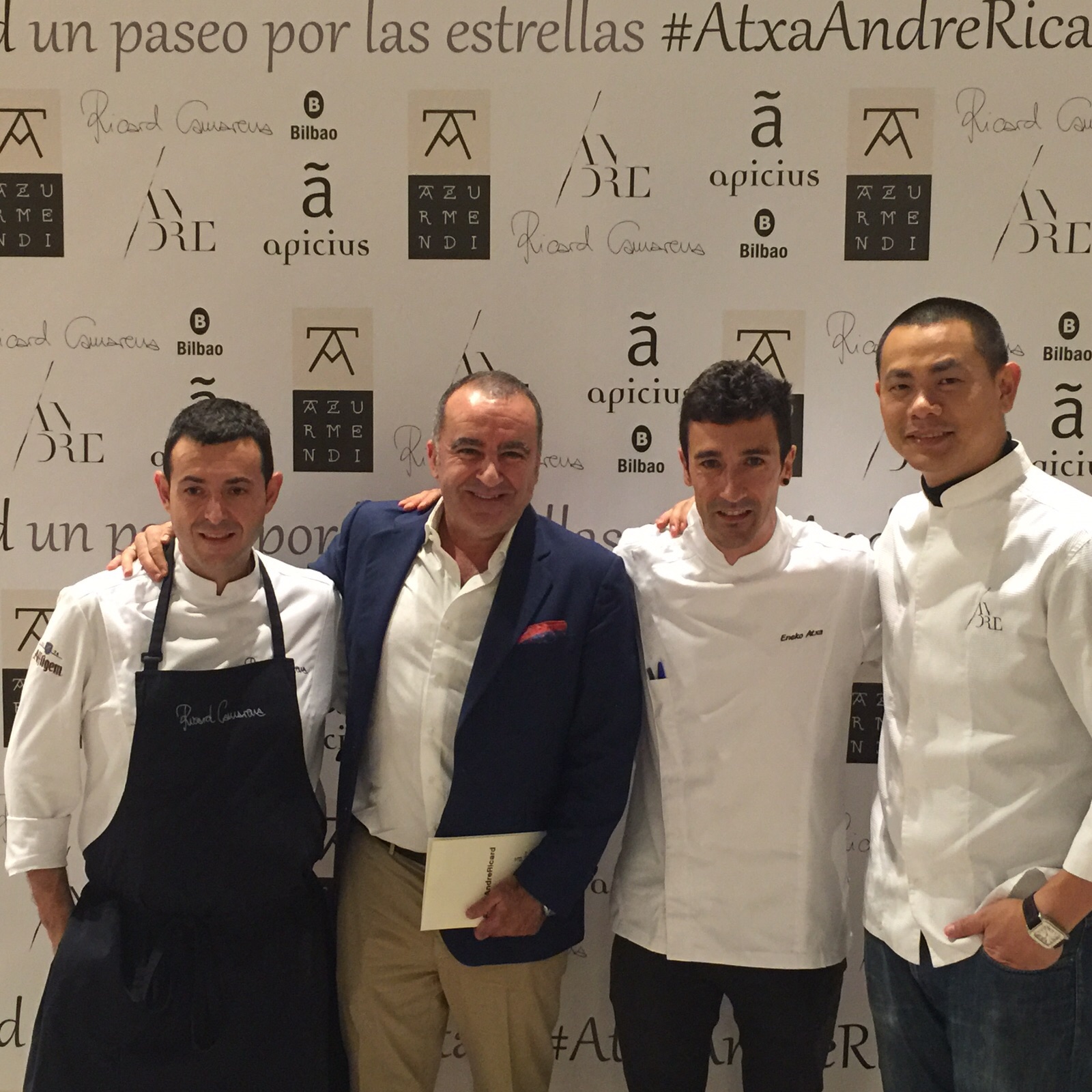 El Restaurante Azurmendi de Eneko Atxa, Km 0 de Bilbao-Bizkaia Slow, se convirtió la noche del lunes, un año más, en el escenario de la cena ‘Paseo por las estrellas’ en el que Ricard Camarena (Ricard Camarena Restaurant, Valencia) y André Chiang (Restaurant André, Singapur) acompañaron a nuestro chef en una cena con lo mejor de sus cocinas, con las fermentaciones como hilo conductor de la historia cocinada a seis manos.