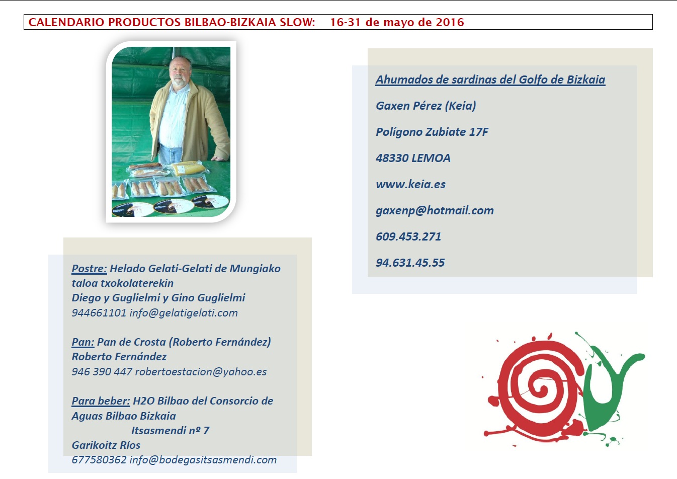 CALENDARIO DE PRODUCTOS BILBAO-BIZKAIA SLOW DEL 16 AL 31 DE MAYO DE 2016