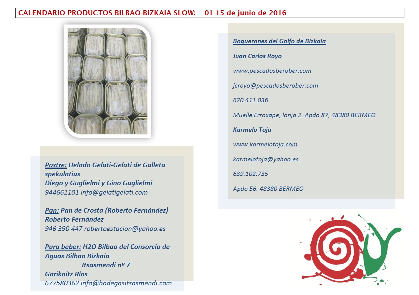 CALENDARIO DE PRODUCTOS BILBAO-BIZKAIA SLOW DEL 01 AL 15 DE JUNIO