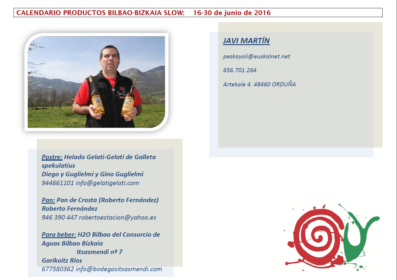 16-30 DE JUNIO: CALENDARIO DE PRODUCTOS BILBAO-BIZKAIA SLOW