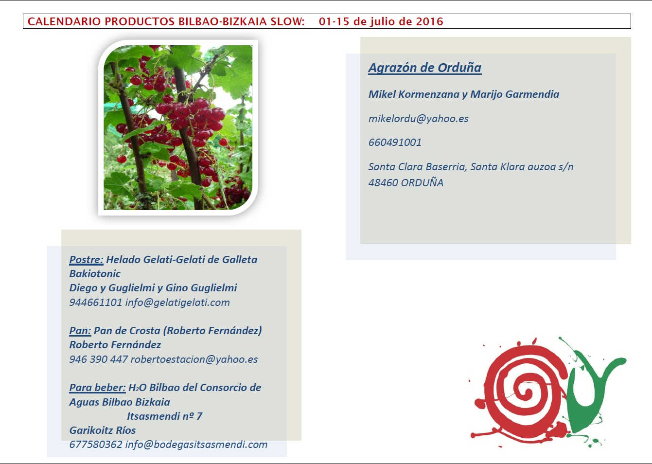 PRODUCTOS BILBAO-BIZKAIA SLOW: 1-15 JULIO DE 2016