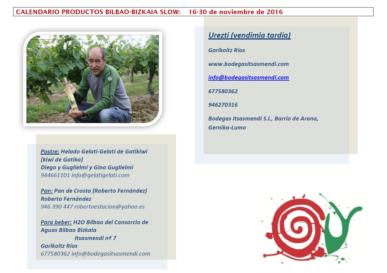 CALENDARIO DE PRODUCTOS BILBAO-BIZKAIA SLOW DEL 16 AL 30 DE NOVIEMBRE
