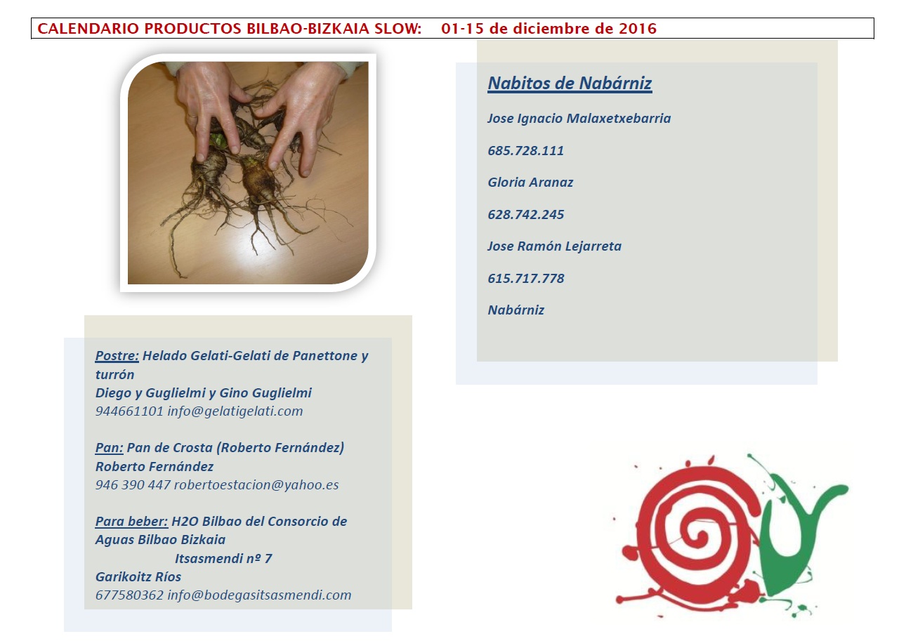 1-15 DICIEMBRE: CALENDARIO DE PRODUCTOS BILBAO-BIZKAIA SLOW