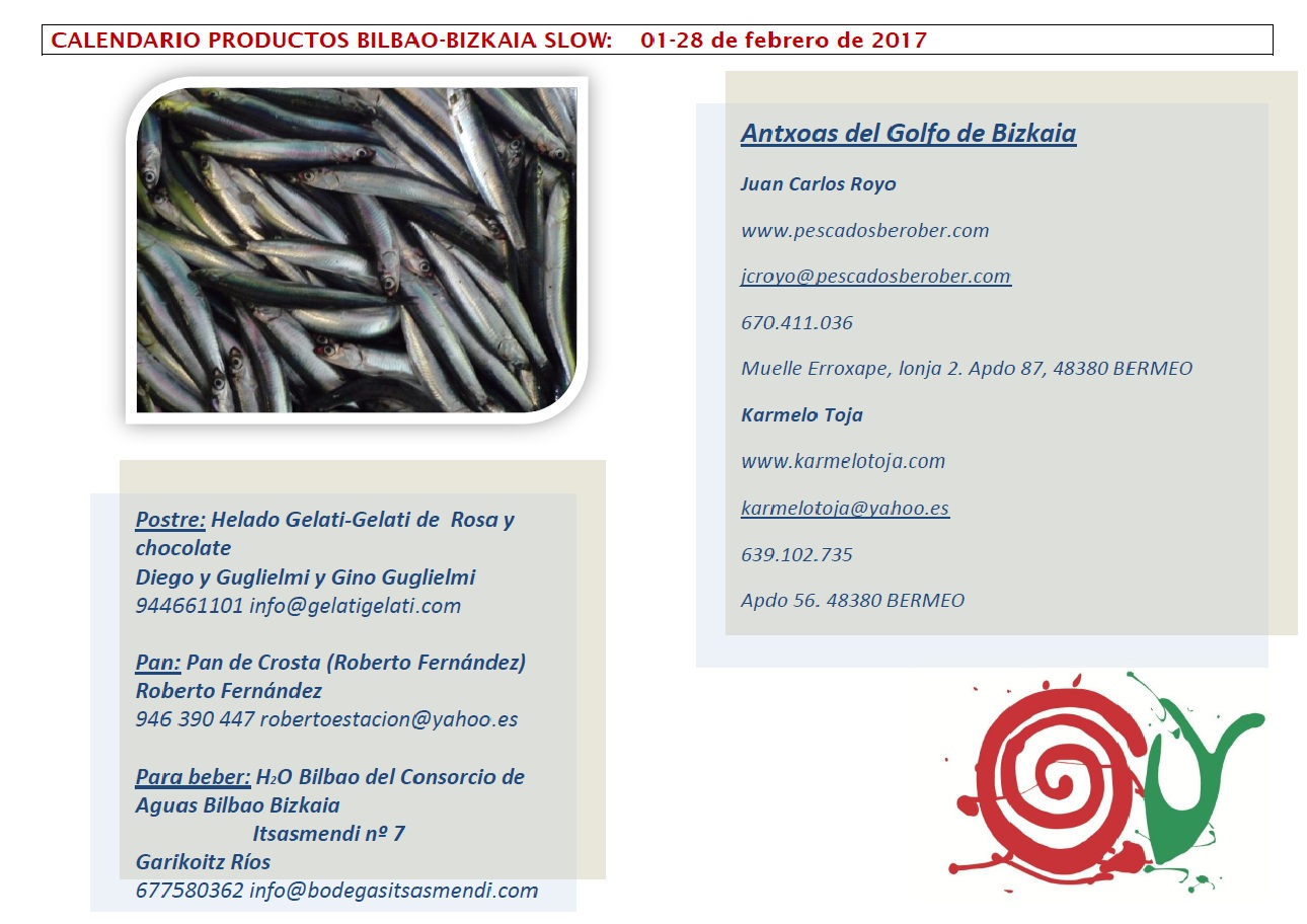 CALENDARIO PRODUCTOS BILBAO-BIZKAIA SLOW: FEBRERO DE 2017