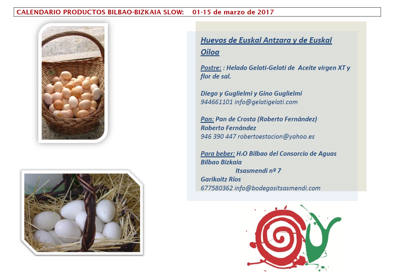 FIN DEL CALENDARIO DE PRODUCTOS BILBAO-BIZKAIA SLOW: 01-15 MARZO DE 2017