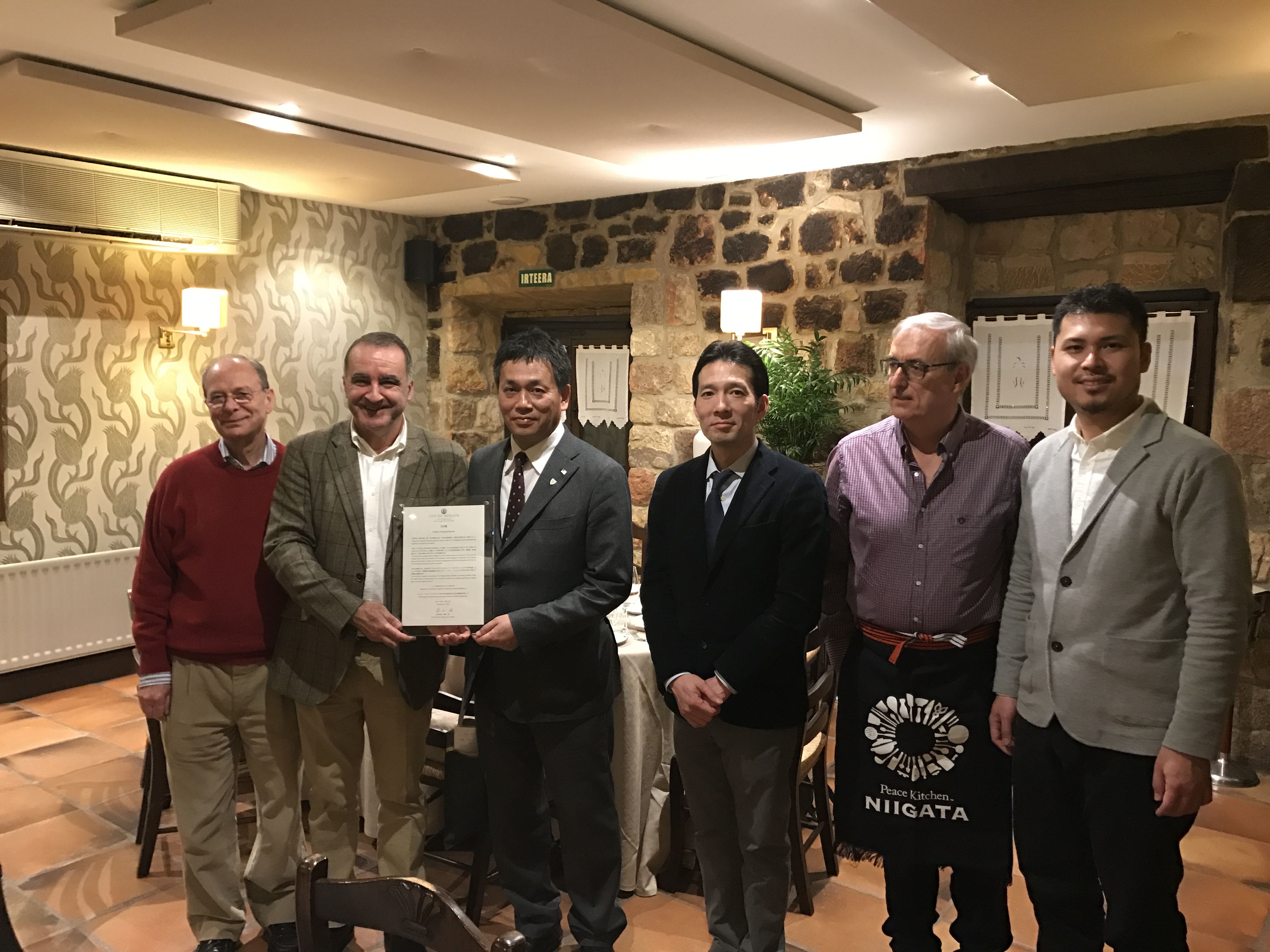 El viernes, 10 de marzo, con motivo de la visita de la delegación japonesa de Niigata a nuestro convivium celebramos, tras la Junta Ordinaria de la Asociación en el restaurante Boroa, la firma del importante acuerdo de colaboración entre Peace Kitchen Niigata y Bilbao-Bizkaia Slow.
