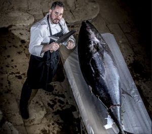 Asistimos a la ceremonia del ronqueo, el despiece de un atún rojo de 175 kilos a manos del cocinero Txema Llamosas