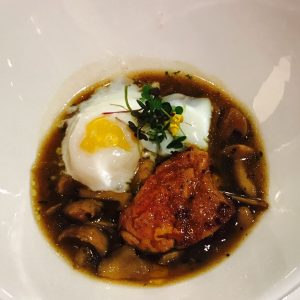Estofado de Perretxikos de Orduña con foie fresco y huevo (Ainhoa Álava) a baja temperatura.